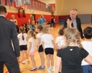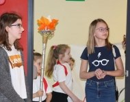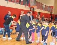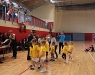 Zawody rozpoczęły się o godz. 9.00. Na sali zameldowały się zespoły, które otrzymały od organizatora tabliczki z nazwą przedszkola. Po krótkim przywitaniu gości przez prowadzącą na halę została wniesiona przez zeszłorocznych zwycięzców flaga igrzysk oraz został zapalony znicz, dokonała tego Julka z przedszkola w Wierchomli. Oni byli zwycięzcami w zeszłym roku. Następnie głos zabrał Pan Burmistrz Dariusz Chorużyk oraz Dyrektor Szkoły Podstawowej Zenon Citak.