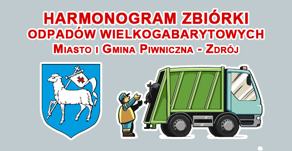 Urząd Miasta i Gminy informuje, że zbiórka odpadów wielkogabarytowych z poszczególnych rejonów Piwnicznej – Zdroju odbywać się będzie w następujących terminach:
